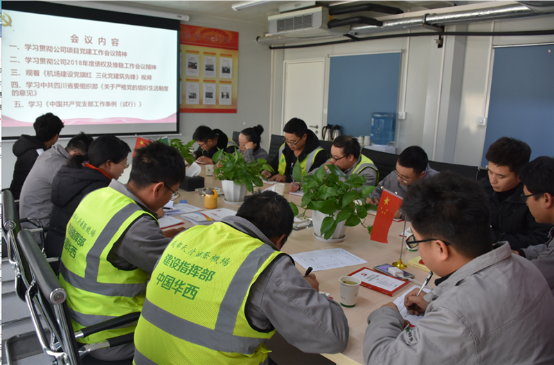 按照省委組織部、省國(guó)資委黨委《國(guó)有企業(yè)黨建“強(qiáng)基固本提升工程 ”實(shí)施方案》精神,天府機(jī)場(chǎng)T2航站樓項(xiàng)目黨支部以“三化”黨建為引領(lǐng),著力加強(qiáng)黨員隊(duì)伍建設(shè),為堅(jiān)決打贏機(jī)場(chǎng)建設(shè)攻堅(jiān)戰(zhàn)提供堅(jiān)強(qiáng)組織保障。12月20日,項(xiàng)目黨支部開展黨員學(xué)習(xí)教育活動(dòng),支部共計(jì)18名黨員參加,黨支部書記主持會(huì)議。