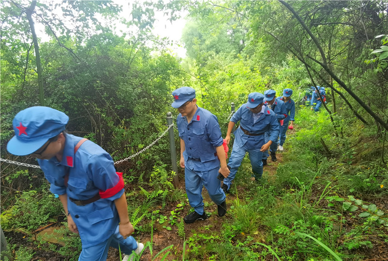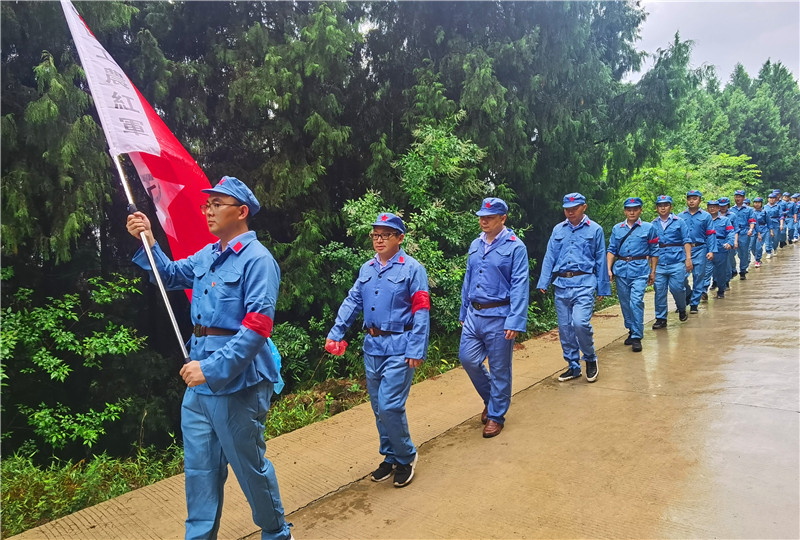 “西風烈,長空雁叫霜成月。霜成月,馬蹄聲碎,喇叭聲咽。雄關漫道真如鐵,而今邁步從頭越.....”這是毛主席《議秦娥·婁山關》中的詩句,描述長征的艱辛。大家穿上紅軍服、戴上紅軍帽,開始了重走長征路活動。“部隊”徒步經(jīng)過了崎嶇的山路,爬上陡峭的山峰,歷時4個小時,用自己堅毅的腳步感受著革命先輩們艱苦奮斗、百折不撓的革命精神。為重現(xiàn)當年長征情景,模擬了“遵義會議”、“過草地”、“爬雪山”等項目。分公司黨總支書記賈先文對各位黨員同志提出要求:一是不忘初心使命,學習傳承革命先烈精神。二是錘煉黨性品質(zhì),不斷增強自身理想信念。三是立足崗位履職,充分發(fā)揮先鋒模范作用。四是提升綜合素質(zhì),勇?lián)髽I(yè)改革發(fā)展重任。