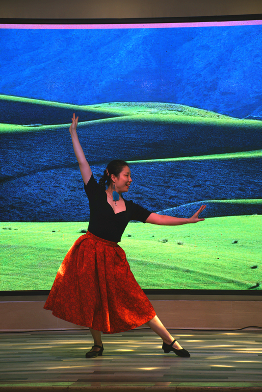 隨著一曲悠揚(yáng)婉轉(zhuǎn)的歌曲緩緩起奏,晚會(huì)表演環(huán)節(jié)正式開始。來自重慶南川金科項(xiàng)目部的孔雯翩翩起舞,一襲新疆舞讓人仿佛置身雪山側(cè)畔,翠綠草原綿延天際,瓜果飄香。隨后,機(jī)關(guān)職工代表演奏了一曲《站起來》,在此新中國成立70周年之際,中國人民也要向世界發(fā)出中國的聲音:中國站起來,強(qiáng)起來,富起來了!