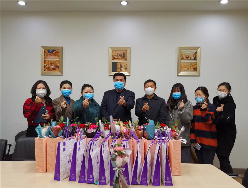 3月9日上午,裝飾公司機(jī)關(guān)舉行了小型的座談交流會,給機(jī)關(guān)六位女職工送去了“三八”節(jié)禮物、鮮花及小蛋糕,并就如何開展三八節(jié)系列活動做了交流探討。機(jī)關(guān)活動完畢后,裝飾公司黨支部書記李東霖與副總經(jīng)理吳建軍帶隊前往金牛賓館項目部,給奮戰(zhàn)在一線的女職工贈送節(jié)日禮品,為她們帶去了祝福和關(guān)心。疫情當(dāng)前,巾幗擔(dān)當(dāng)。項目女職工要繼續(xù)發(fā)揮巾幗精神,在自己平凡的崗位上多做崗位工作,多為項目貢獻(xiàn)自己的一份力量。