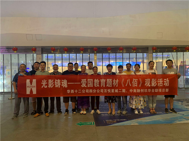 為進(jìn)一步弘揚(yáng)愛國(guó)主義精神,激發(fā)愛國(guó)主義情懷,增強(qiáng)歷史責(zé)任感與使命感,9月9日,百悅星城二期、中南融創(chuàng)玖華臺(tái)邸項(xiàng)目20余名管理人員共同觀看了以真實(shí)事件為背景改編的愛國(guó)教育題材電影——《八佰》。