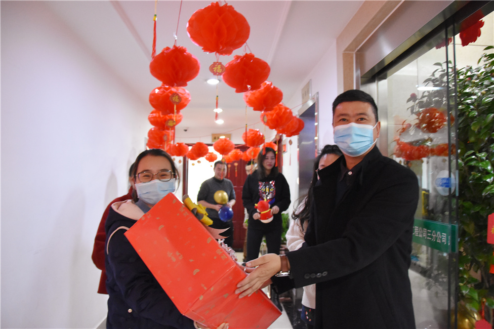 此次生日會緊扣新春主題,分公司辦公區(qū)金牛迎春五彩斑斕、走廊上火紅燈籠喜氣洋洋、接待室生日糕點(diǎn)琳瑯滿目。在做好疫情防控工作的前提下,“你比我猜”、“包餃子話團(tuán)圓”、“猜燈謎”等豐富多樣的活動有序的開展進(jìn)行,并在活動間隙穿插了線上“云”抽獎,驚喜與歡樂的音符回蕩在分公司本部的每個角落。正是這些幸福的畫面與平時同事們忙碌的影子,挑燈夜戰(zhàn)加班的場景交織在一起,鑄就了三分公司這樣一支團(tuán)結(jié)的隊伍。