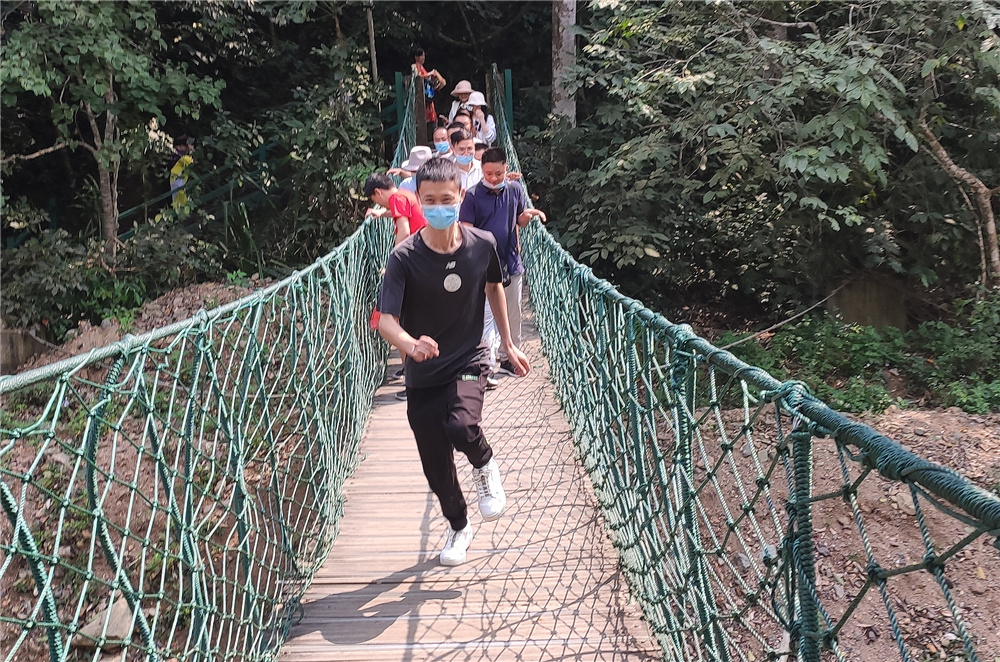 陽(yáng)春三月,艷陽(yáng)高照。在拓展機(jī)構(gòu)老師的帶領(lǐng)下,項(xiàng)目部全體成員滿(mǎn)懷熱情,一齊來(lái)到野象谷熱帶雨林拓展?fàn)I地?;顒?dòng)開(kāi)始前,全體成員分為兩支隊(duì)伍,按要求選定隊(duì)長(zhǎng),組建團(tuán)隊(duì)?;顒?dòng)開(kāi)始后,兩支隊(duì)伍各自為陣,開(kāi)展了激烈的角逐。在舞姿battle比拼中,隊(duì)員們向當(dāng)?shù)卮鲎迮笥褜W(xué)習(xí)竹竿舞,伴隨著節(jié)奏強(qiáng)烈的民族音樂(lè)舞動(dòng)著身軀,上演了一場(chǎng)別開(kāi)生面的“舞林大會(huì)”。進(jìn)入熱帶雨林,兩隊(duì)隊(duì)員通過(guò)地圖規(guī)劃了不同的徒步穿越路線,大家一齊鼓足干勁,迎著陽(yáng)光踏上了徒步穿越的征程,跨過(guò)叢林,穿過(guò)溪流,努力完成每一項(xiàng)趣味十足的團(tuán)隊(duì)任務(wù)。最終,兩支隊(duì)伍共同抵達(dá)終點(diǎn),順利完成徒步穿越。