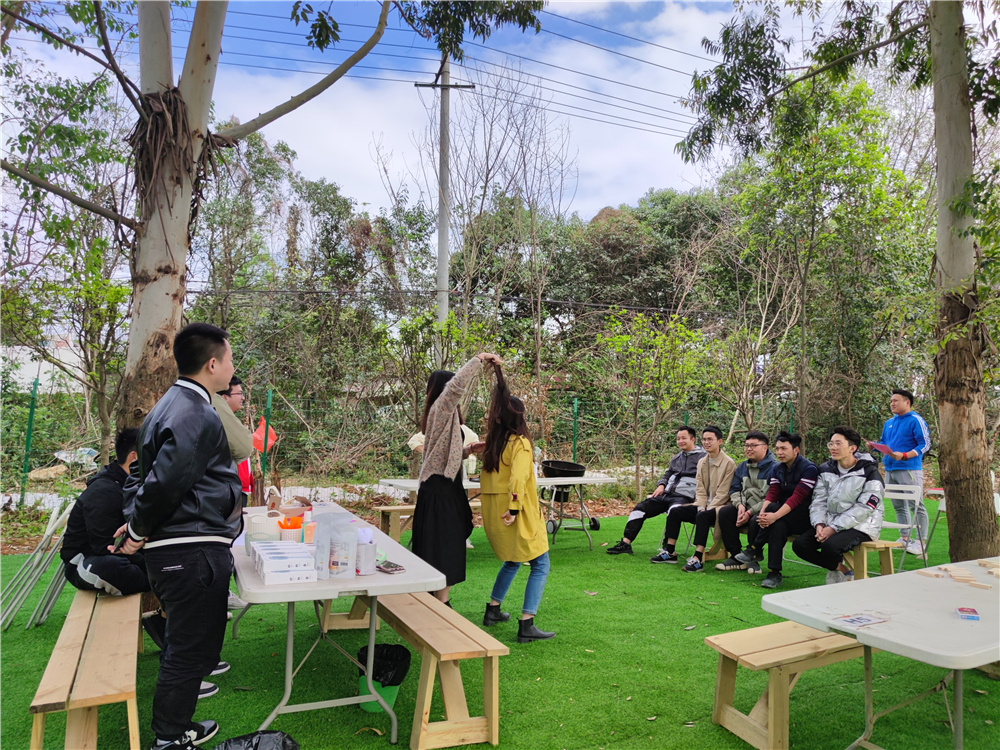 此次活動分為四個環(huán)節(jié):你比我猜、踢毽子、抽積木、成語接龍。活動中,“你比我猜”環(huán)節(jié)既有“善建天下”的企業(yè)文化,也有青年津津樂道的“流行術(shù)語”,此環(huán)節(jié)不僅增強了各參賽隊伍成員的“愛企之心”,也促進了項目青年的興趣交流和彼此切磋的機會。緊接著,“團隊踢毽子”的比賽,女青年的技藝更勝一籌。“抽積木”則要求青年們既要迅速思考,又要具備穩(wěn)中有快的單手操作能力。“成語接龍”在限時的條件下既展示了團隊之間的協(xié)作凝聚力,又考驗青年大腦中日積月累儲備的知識儲備量。每個環(huán)節(jié)充分展現(xiàn)了項目青年們的知識內(nèi)核和充沛體力,精彩演繹了一場“文”與“武”的較量。