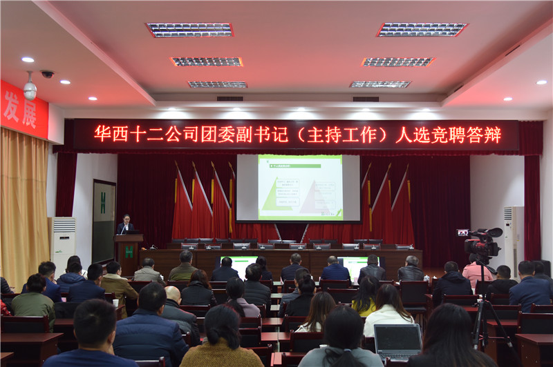 11月28日,華西十二公司召開團委副書記人選競聘。經(jīng)過自薦報名、資格審查等環(huán)節(jié)篩選后,共有四名競選人進入本次競聘會。此次團委副書記(主持工作)人選競聘會,得到了公司領導的高度重視,特別成立了競聘領導小組,公司黨委書記朱軍擔任組長,公司領導班子趙崇賢、吳偉、黃光洪、馮剛、尹德富、劉波、胡明亮,以及部門負責人伍貝貝、史瑋擔任組員。競聘會上,邀請到了集團團委負責人陳敏,與領導小組其中9位成員擔任評委。公司機關各部門負責人、各黨總支、直屬黨支部書記、各分公司、專業(yè)公司團總支書記及青年代表共計70余人參加競聘會。會議由黨工部副部長伍貝貝主持。