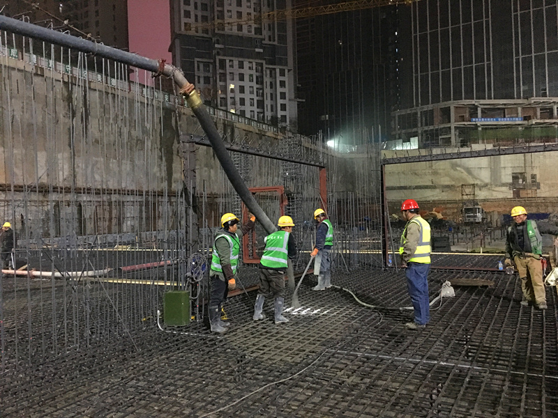 為保證首次筏板澆筑圓滿成功,由項目副經(jīng)理、生產(chǎn)經(jīng)理帶領(lǐng)的管理團隊堅守在施工現(xiàn)場,做好前期部署,項目嚴格執(zhí)行澆筑方案,嚴把質(zhì)量關(guān)口。為保證現(xiàn)場秩序,項目專門安排了交通疏導(dǎo)員,全力做好澆筑準備。在澆筑時對澆筑全過程進行監(jiān)督、指導(dǎo),確保施工安全及工程質(zhì)量,經(jīng)過數(shù)十小時的奮戰(zhàn),終于在25日凌晨順利完成C3筏板基礎(chǔ)澆筑工作,共計澆筑混凝土2086立方米。