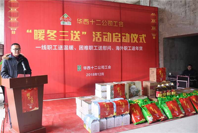 歲寒情深,關(guān)懷暖心。12月29日下午,迎著漫天紛飛的小雪,十二公司工會2018年“暖冬三送”慰問活動啟動儀式在一分公司恒大·曹家巷廣場項目支會隆重舉行。十二公司常務(wù)副總經(jīng)理吳偉、工會主席馮剛出席活動,各基層分會工會主席、一線職工、海外職工和農(nóng)民工代表共計80余人參加了啟動儀式。