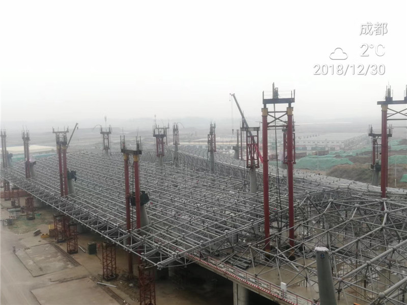 C指廊作為項目部的形象窗口,在安全文明與進(jìn)度管理方面長期位居五區(qū)之首, 2018年9月24日率先開始航站區(qū)屋面鋼網(wǎng)架結(jié)構(gòu)拼裝,目前正著手二次結(jié)構(gòu)施工。這幾日,保持連續(xù)搶抓工期,為鋼結(jié)構(gòu)分包單位創(chuàng)造有利施工條件,計劃于1月上旬開始網(wǎng)架提升,C指廊又將成為整個航站區(qū)首個進(jìn)行鋼網(wǎng)架提升的施工區(qū)域。