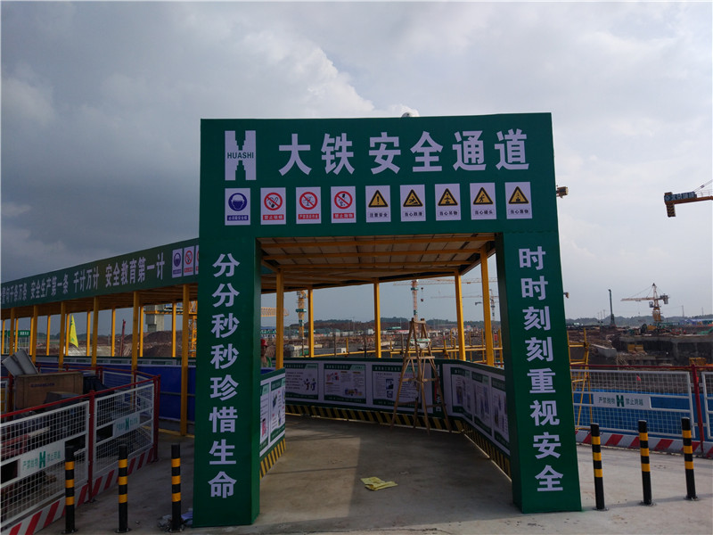 成都天府國際機(jī)場(chǎng)T2航站樓項(xiàng)目大鐵(即高速鐵路)施工區(qū)正在修建的成都至自貢線天府機(jī)場(chǎng)段天府機(jī)場(chǎng)站二標(biāo)段,為線路大里程方向咽喉區(qū)。項(xiàng)目全長464米,是全世界首例直接下穿機(jī)場(chǎng)航站樓、滑行區(qū)、跑道的高鐵施工區(qū),建成后高鐵時(shí)速達(dá)350公里。該工程挖掘的基坑最深達(dá)25.3米,作業(yè)區(qū)域最窄僅22米,側(cè)墻、頂板均為大體積混凝土,鋼筋密、砼振搗難,同時(shí)面臨大量高空作業(yè)、長期晝夜連續(xù)施工、雨季防汛防洪工作量大等困難。面對(duì)挑戰(zhàn),項(xiàng)目部安全管理團(tuán)隊(duì)堅(jiān)持堅(jiān)守,做實(shí)安全管理日常工作,創(chuàng)新安全管理新方法,在大鐵施工的400余天里,始終保持了安全生產(chǎn),為大鐵施工做好了保駕護(hù)航。