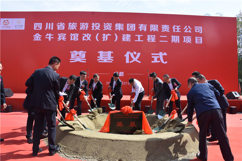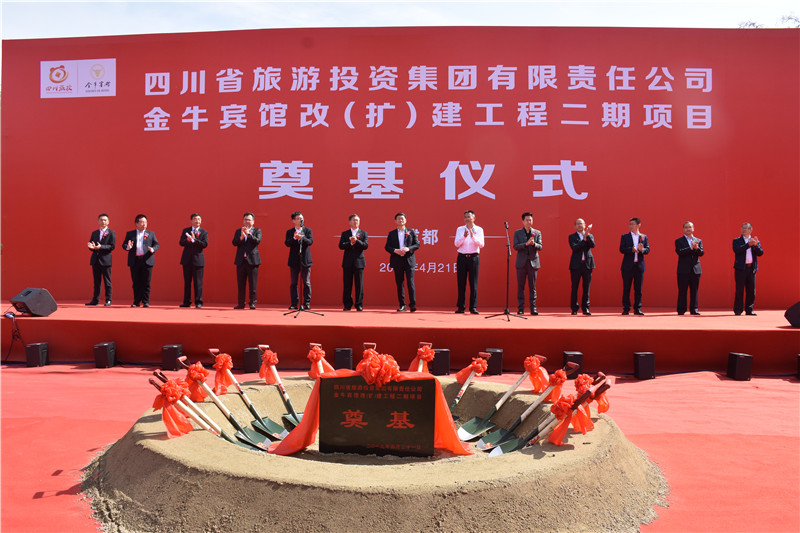 最后,隨著任丁宣布:“四川省旅游投資集團金牛賓館改(擴)建工程二期項目正式奠基!",禮花升空,伴隨著現(xiàn)場熱烈的掌聲和機械轟鳴聲,各位嘉賓前往奠基處為奠基石培土,金牛賓館改(擴)建工程二期項目奠基儀式圓滿落幕。