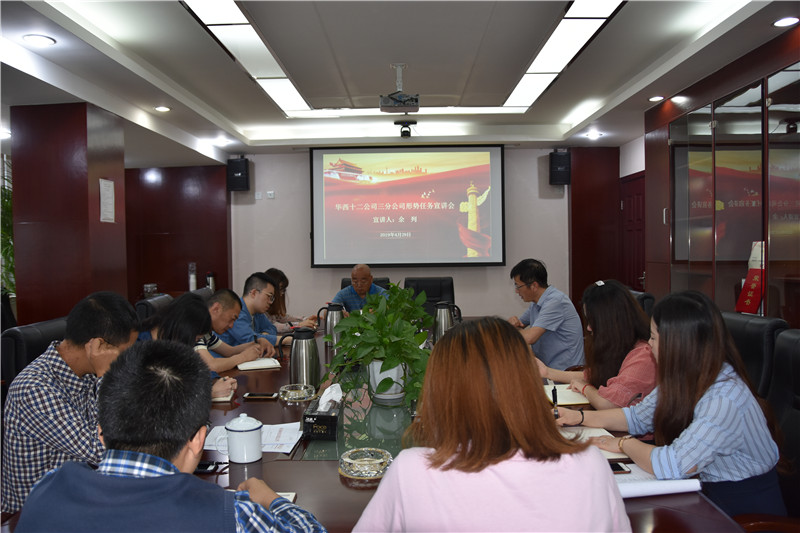 近日,為了積極響應(yīng)公司黨委號召開展形勢任務(wù)教育活動,三分公司組織開展了2019年第一季度形勢任務(wù)宣講,由分公司黨總支書記、工會主席余列擔(dān)任宣講人。分公司機(jī)關(guān)全體管理人員參加會議。