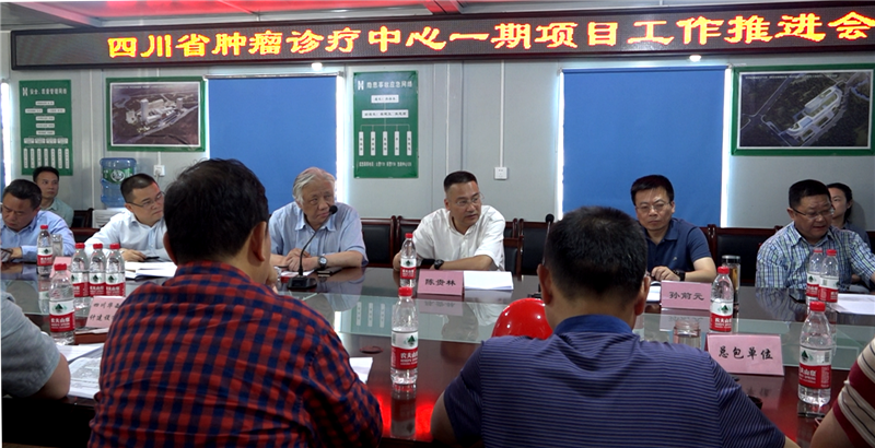 5月21日,四川省腫瘤醫(yī)院院長郎錦義、四川省級機關房屋統(tǒng)建服務中心總經(jīng)理植志剛,四川華西集團黨委書記、董事長陳貴林一行赴腫瘤診療中心一期項目召開工作推進會。