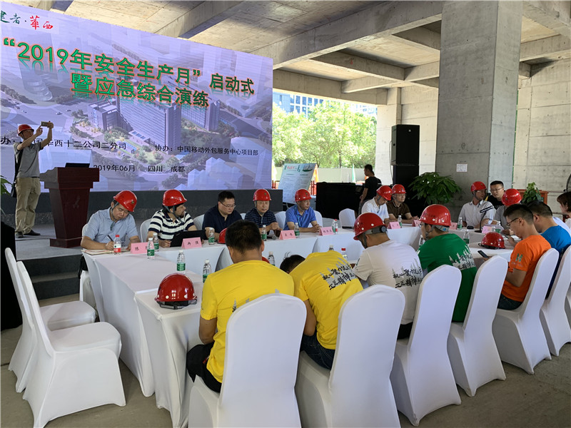 近日,二分公司在中國移動外包服務(wù)中心項目組織召開分公司2019年“安全生產(chǎn)月”啟動儀式,并開展應(yīng)急綜合演練。公司常務(wù)副總經(jīng)理吳偉、公司安全部部長文力,以及甲方和監(jiān)理等單位有關(guān)領(lǐng)導(dǎo)蒞臨儀式,分公司領(lǐng)導(dǎo)班子,各部門負(fù)責(zé)人,項目經(jīng)理、項目書記、安全負(fù)責(zé)人及分公司勞動競賽參賽人員代表參加了本次活動。會議由分公司工程部部長吳順彬主持。