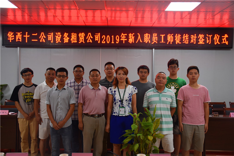 為繼承華西“導(dǎo)師帶徒”傳統(tǒng),加快培養(yǎng)企業(yè)實(shí)用人才,切實(shí)提高企業(yè)新員工的實(shí)際工作能力和業(yè)務(wù)水平,使其能盡快熟悉和參與崗位工作,適應(yīng)管理崗位工作職責(zé)要求,全身心的投入到工作當(dāng)中去,近日,設(shè)備租賃公司開展了2019年新入職大學(xué)生師徒結(jié)對簽訂儀式。設(shè)備租賃公司領(lǐng)導(dǎo)班子、有關(guān)部門負(fù)責(zé)同志、4對結(jié)對師徒共13人參加本次會議。