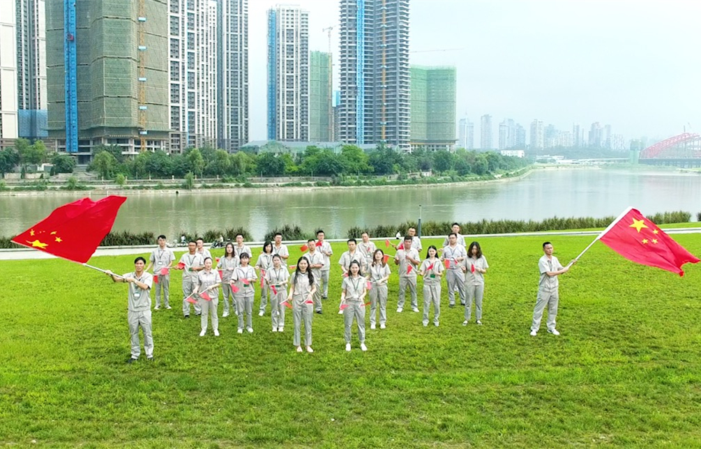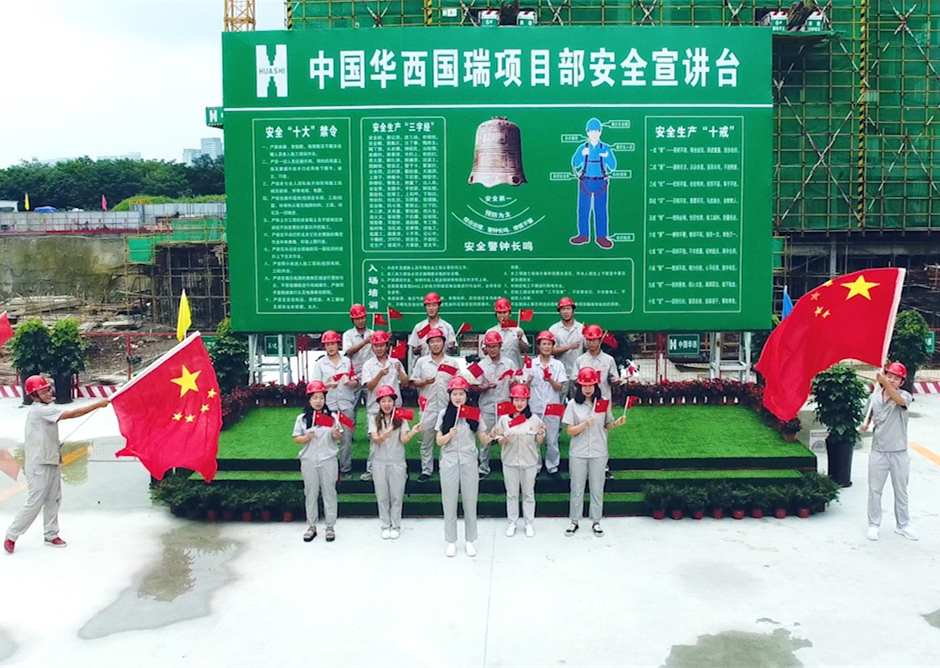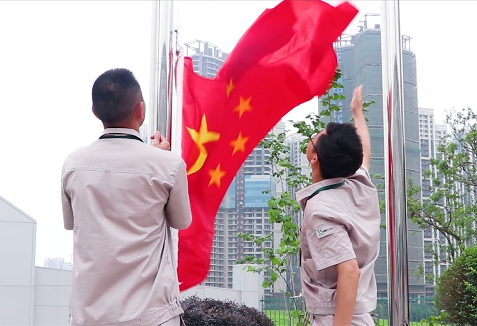 當(dāng)?shù)谝豢|曙光照耀進(jìn)華西工地的大門,走在塔吊與鋼筋混凝土之間,伴隨著冉冉升起的國旗,工地的每一個角落都回蕩著《我和我的祖國》這首熟悉的歌聲。大家從各個崗位匯聚到一起,深情放歌。活動現(xiàn)場,大家的愛國激情被迅速點(diǎn)燃,一起跟著節(jié)奏不停地?fù)]動手中的國旗,應(yīng)聲而歌,表達(dá)對祖國的祝福和熱愛。鮮艷的國旗,跳躍的音符,動聽的歌聲……剎那間,愛國之情在每一位華西人的心中涌動,昂揚(yáng)進(jìn)取、心系家國的情懷一一展現(xiàn)。
