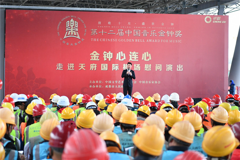 首次在成都舉行的“第十二屆中國音樂金鐘獎”,是由中國文學藝術界聯(lián)合會和中國音樂家協(xié)會共同主辦,成都市人民政府承辦,已于10月19日在成都舉辦盛大的開幕音樂會。本次“金鐘心連心”走進基層慰問演出作為中國音樂金鐘獎配套演出,來到了成都天府國際機場T2航站樓項目。演出現(xiàn)場氣氛熱烈,知名音樂人士、一線建設者、華西參建者及各兄弟單位等300余人匯聚一堂。雖正值深秋之際,活動現(xiàn)場卻洋溢著熱鬧的氛圍,豐富多彩的演出如同一股暖流,不僅為基層建設者帶來了視聽盛宴,更是溫暖著基層建設者的心。