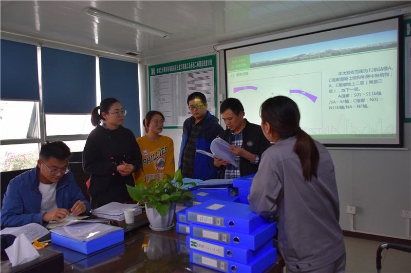 本次驗(yàn)收范圍包括T2航站樓A、C指廊地上混凝土主體結(jié)構(gòu)以及L3層局部鋼結(jié)構(gòu)房中房,A、C指廊為地上二層局部三層混凝土及鋼結(jié)構(gòu)房中房,地下一層管廊結(jié)構(gòu)。優(yōu)質(zhì)結(jié)構(gòu)驗(yàn)收小組由成都市質(zhì)監(jiān)站站長(zhǎng)鄭祥中帶隊(duì),首先在T2航站樓會(huì)議室召開(kāi)會(huì)議,確定驗(yàn)收分組及驗(yàn)收流程,并重點(diǎn)對(duì)驗(yàn)收過(guò)程主要事項(xiàng)及驗(yàn)收要點(diǎn)進(jìn)行了闡述與安排,安排一組對(duì)驗(yàn)收各分項(xiàng)所涉及的圖紙、施工過(guò)程資料、檢測(cè)報(bào)告等資料進(jìn)行詳細(xì)審核。
