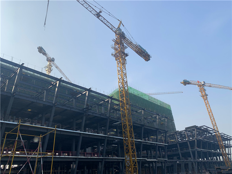 工欲善其事,必先利其器。設(shè)備租賃公司接到該項目任務(wù)后,便開始緊鑼密鼓的籌備、精心籌劃、精細組織。一方面密切聯(lián)系設(shè)計院積極推進圖紙深化工作;一方面針對各個部分的不同特點,有針對性地編制專項施工方案,對方案進行反復(fù)研究、討論,并一次性順利地通過了“超過一定規(guī)模的危險性較大分部分項”專項施工方案的專家論證;另一方面根據(jù)工程實際和現(xiàn)場工期要求最終確定了多個加工廠分區(qū)制作和兩個安裝班組分區(qū)同時安裝的方案以保證工程工期。2019年8月17日,鋼構(gòu)件正式進場,標(biāo)志著門診醫(yī)技樓地上部分的安裝工作全面開始。