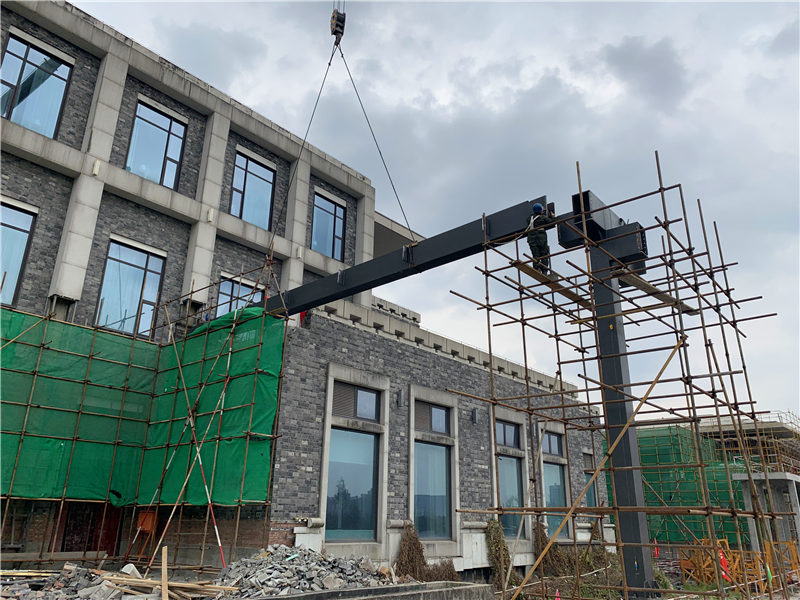 3月9日凌晨,滿載著鋼構(gòu)件的貨車駛?cè)虢鹋Ye館項(xiàng)目,設(shè)備租賃公司吊裝項(xiàng)目部管理人員和作業(yè)人員嚴(yán)陣以待,立即投入到構(gòu)件卸貨中。金牛賓館改(擴(kuò))建項(xiàng)目是集團(tuán)和公司重點(diǎn)工程,工期緊,任務(wù)重,而門廳鋼結(jié)構(gòu)施工現(xiàn)場場地狹窄、構(gòu)件重、施工難度較大。受疫期影響,工期更加緊迫,從構(gòu)件制作到安裝完成只有20天。因此,盡管天空下著小雨,項(xiàng)目部仍不敢有絲毫懈怠和退縮,經(jīng)過四個(gè)多小時(shí)的努力,冒雨將全部構(gòu)件安全、完整地卸下,為鋼結(jié)構(gòu)安裝爭取時(shí)間。3月10日,緊張忙碌的吊裝作業(yè)開始,設(shè)備租賃公司吊裝項(xiàng)目部表示不怕困難,定將發(fā)揚(yáng)“秉德從道,善建天下”的企業(yè)精神,做好疫情防控和安全管理,戰(zhàn)勝困難,在風(fēng)雨中砥礪前行,保證該項(xiàng)目鋼結(jié)構(gòu)工程按期完成。
