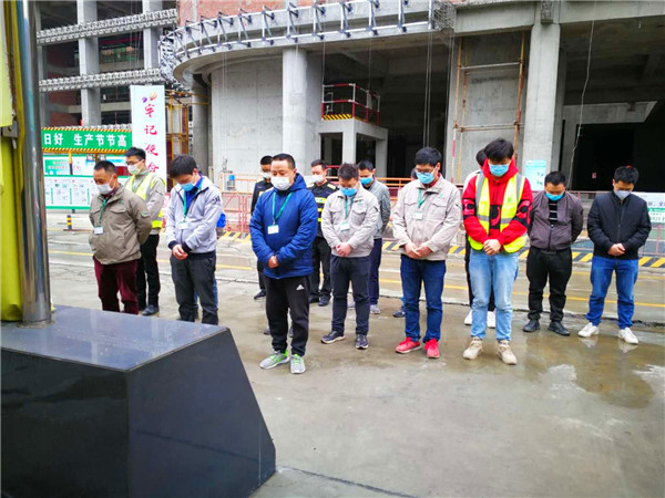 華西十二公司全體職工深切悼念抗擊新冠肺炎疫情斗爭犧牲烈士和逝世同胞,各項(xiàng)目部也自發(fā)組織了在崗職工集體哀悼活動。下半旗、肅立、摘帽、默哀,職工們向在抗擊新冠肺炎疫情中犧牲的英雄和烈士表達(dá)敬意,向在疫情中逝世的同胞表示哀悼。在這場“戰(zhàn)疫”中,中國人民克服各種困難,付出巨大犧牲,一些醫(yī)務(wù)人員,干部職工因公殉職,中華同胞被病魔奪去寶貴生命。每一個生命的逝去,都值得我們永遠(yuǎn)銘記。
