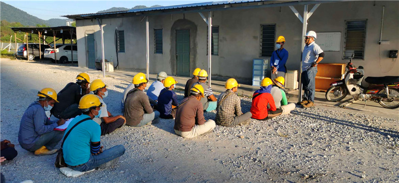 此外,由于馬來西亞信仰伊斯蘭教者眾多,宗教氛圍濃厚,項目上很多勞務(wù)人員有聚集到一起進(jìn)行祈禱的習(xí)俗。為了避免聚集引發(fā)疫情傳播,項目部推行分批祈禱,更提倡在宿舍自行祈禱。在充分尊重當(dāng)?shù)孛癖娦叛龅那疤嵯?,堅持定時消毒和體溫測量準(zhǔn)入兩個抓手,全力保障項目員工安全。