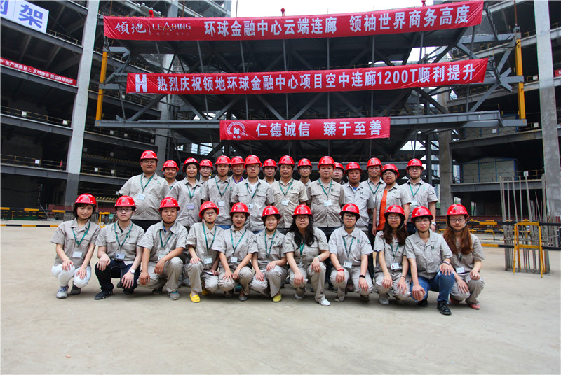 2016年 5月31日上午10時,經(jīng)過最后時刻細致嚴謹?shù)暮瞬?,指揮臺一聲令下——“同意吊裝!”千噸鋼廊緩緩升起。在施工人員緊張有序、謹慎嚴密的操作下,歷時三天,隨著連廊緩緩升至頂端,鋼結(jié)構(gòu)連廊于6月2日傍晚7點順利提升到位并成功對接。項目黨員們用日旰忘食的精神鼓舞和感染著身邊的每一個人,從最初的方案論證、連廊拼接到BIM模擬、測試提升,在項目黨支部的號召下,全體黨員統(tǒng)一認識、明確分工、協(xié)作支持,充分發(fā)揮出黨員的先鋒模范作用和黨支部的戰(zhàn)斗堡壘作用。黨員職工們沒有退卻,沒有被困難壓倒,通過主動學(xué)習(xí)、虛心請教、集體探討,最終掌握了連廊吊裝技術(shù)要領(lǐng)。每個黨員儼然是一面旗幟、一顆釘子!正是釘子們的無私奉獻,帶動和團結(jié)了身邊的群眾員工,向著共同的目標,共同進步、共同探索,百分之百保障了連廊的成功登頂!