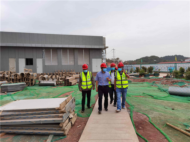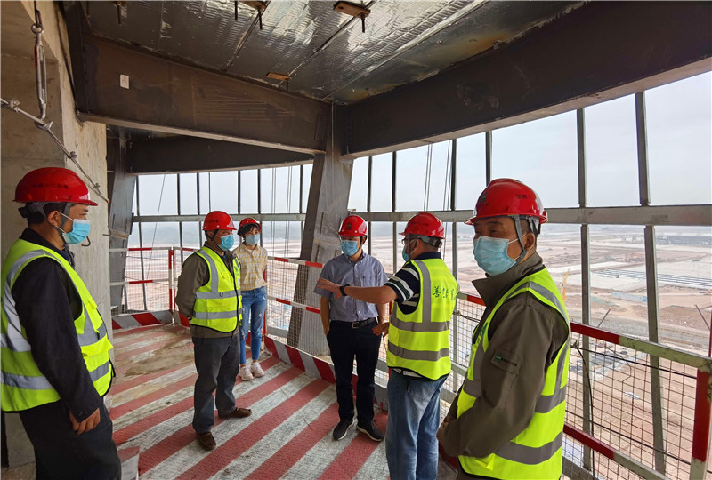 朱軍一行到達空管工程項目后,按項目部防疫工作要求進行了登記、消毒、測溫,并登上項目1號塔臺進行了實地調(diào)研,詳細了解了空管工程項目的形象進度、施工管理、質(zhì)量安全、防疫物資儲備、防疫措施及復(fù)工復(fù)產(chǎn)材料儲備等方面情況。