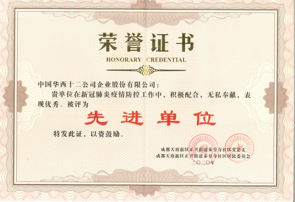 2020年抗擊新冠肺炎這場(chǎng)沒(méi)有硝煙的戰(zhàn)斗是一場(chǎng)事關(guān)全局的殊死搏斗,也是一場(chǎng)國(guó)家力量、社會(huì)道義與病毒惡魔的生死較量,自疫情防控工作啟動(dòng)以來(lái),三分公司廣匯御園項(xiàng)目部積極響應(yīng)政府號(hào)召,全面開(kāi)展疫情防控工作, 無(wú)私奉獻(xiàn),為抗疫阻擊戰(zhàn)貢獻(xiàn)力量。5月26日,成都天府新區(qū)正興街道秦皇寺社區(qū)黨總支授予項(xiàng)目部所在的中國(guó)華西企業(yè)股份有限公司第十二建筑工程公司防疫工作先進(jìn)單位稱(chēng)號(hào)。