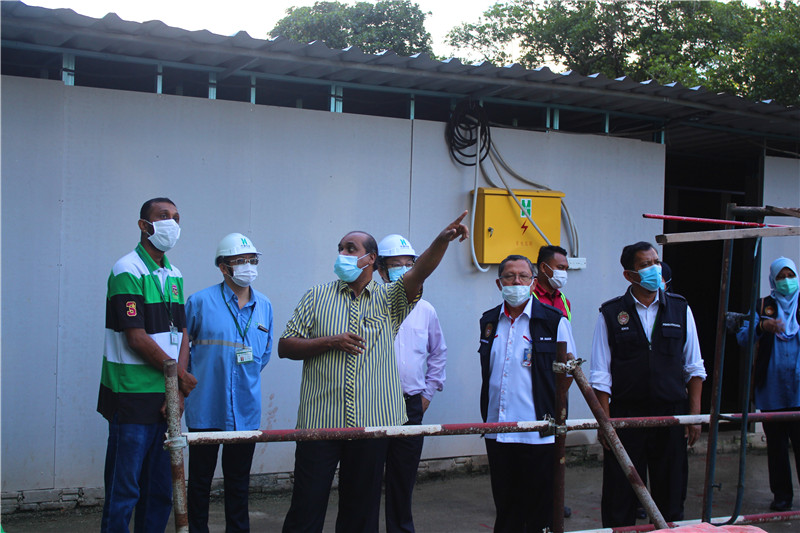 DR AMAN BIN BABU一行首先聽(tīng)取了項(xiàng)目部針對(duì)防控防疫和滅蚊驅(qū)蚊的工作匯報(bào)。隨后,工作人員對(duì)現(xiàn)場(chǎng)滅蚊工作進(jìn)行抽查,重點(diǎn)巡查了勞務(wù)工人宿舍、浴室、食堂等區(qū)域,并親切慰問(wèn)了外勞工友們的生活和健康狀況。當(dāng)了解到項(xiàng)目部未出現(xiàn)一例疑似或確診新冠肺炎病例,也未出現(xiàn)一例登革熱病例時(shí),DR AMAN BIN BABU對(duì)項(xiàng)目的疫情防控工作給予了高度贊揚(yáng)。部長(zhǎng)對(duì)項(xiàng)目提出了幾點(diǎn)要求:一是現(xiàn)在馬來(lái)西亞境內(nèi)確診病例逐日減少,主要病例來(lái)源為境外輸入,項(xiàng)目部外籍勞務(wù)工人眾多,疫情防控力度要持續(xù)增強(qiáng);二是復(fù)工復(fù)產(chǎn)前項(xiàng)目部所有人員必須全面進(jìn)行核酸篩查,確保每一位人員的安全;三是項(xiàng)目部針對(duì)疫情防控必須要有應(yīng)急預(yù)案,與定點(diǎn)醫(yī)院聯(lián)系,做到無(wú)縫對(duì)接;四是項(xiàng)目部要采取封閉式管理,聯(lián)系專業(yè)人員配送勞務(wù)工人的生活用品,定期進(jìn)行消毒滅蚊。