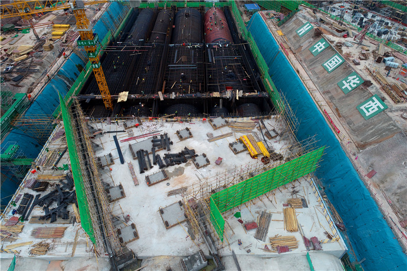 華西十二公司所承建長度為464米,其中有326米在航站樓下方,工程量巨大,鋼筋用量超過30000噸,混凝土約20萬立方米。由于地上建有航站樓,對(duì)技術(shù)、工藝及減振要求極高,本項(xiàng)工程也將填補(bǔ)該領(lǐng)域在研究、施工、應(yīng)用上的空白。
