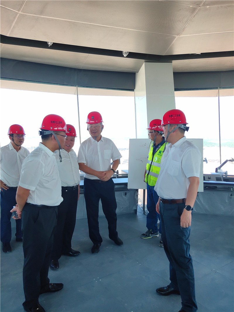 汪濤、陳穎銳一行到達(dá)空管工程項(xiàng)目部后,按防疫工作要求進(jìn)行了登記、消毒、測(cè)溫,隨后對(duì)項(xiàng)目1#塔臺(tái)施工現(xiàn)場(chǎng)的工作進(jìn)行了調(diào)研,并詳細(xì)了解了空管工程的建設(shè)情況。