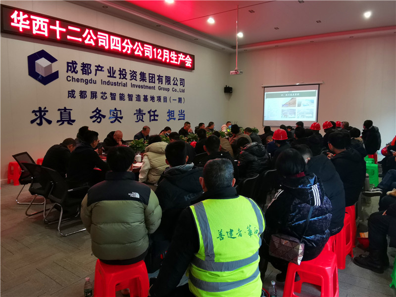 12月31日,四分公司在成都屏芯智能智造基地項(xiàng)目(一期)召開了12月生產(chǎn)會(huì),分公司領(lǐng)導(dǎo)班子成員、各部門負(fù)責(zé)人及項(xiàng)目部主要管理人員共計(jì)70余人參加會(huì)議。