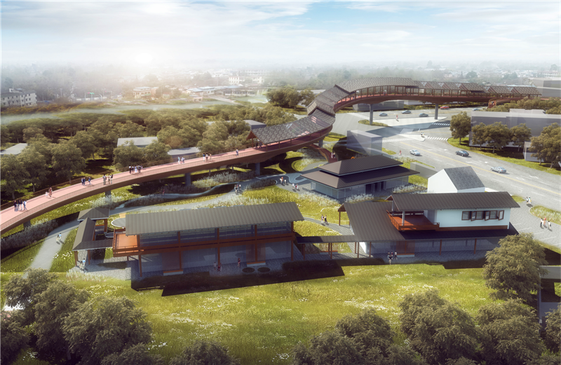 建設(shè)地點位于成都市都江堰市、郫都區(qū)。項目綠道總長約為15.67公里。其中郫都區(qū)戰(zhàn)旗村到金星村1公里;都江堰錢家院子到彭青線3.67公里;都江堰與郫都交界處至唐昌鎮(zhèn)金星村羅家院子、寧馨大道 至白鶴堰段11.09公里。其中郫都段含:一個新建驛站工程,建筑面積約265.04m2;一個橋梁工程,全長580米;其中主橋全長403.4m,主橋橋上第三聯(lián)設(shè)置廊亭,共132米。
