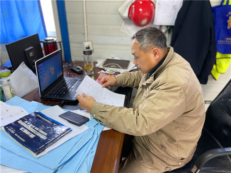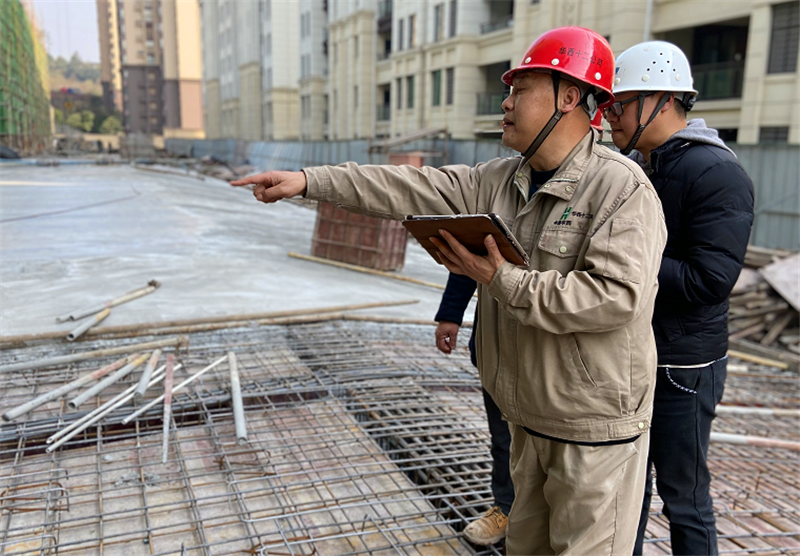 隨著冬季寒潮來襲,氣溫驟降,每天的最低溫度已是零下,加上重慶地區(qū)潮濕多雨,給施工生產(chǎn)帶來了一定的影響。每天清晨,湯工早早地來到工地,四處還結(jié)著冰霜,冷到骨子里,他只一門心思地?fù)涞焦ぷ魃?。每一層樓,從緊盯鋼筋型號、數(shù)量、間距,審核鋼筋下料單,到仔細(xì)驗(yàn)收直螺紋套筒連接、止水鋼板焊接……工地上有關(guān)鋼筋施工大大小小的問題都由他把關(guān),“有問題,找湯工”,是同事們對他專業(yè)素養(yǎng)和工作態(tài)度的肯定。用腳步丈量偌大的施工現(xiàn)場,湯工每天無一例外地霸占微信好友圈“步數(shù)排行榜”的第一名,有時(shí)一天能走出近六萬步的驚人數(shù)字。戰(zhàn)嚴(yán)寒,他是風(fēng)雪夜歸人,堅(jiān)守崗位,他帶頭克服不利氣候條件,搶抓今年最后的施工期。