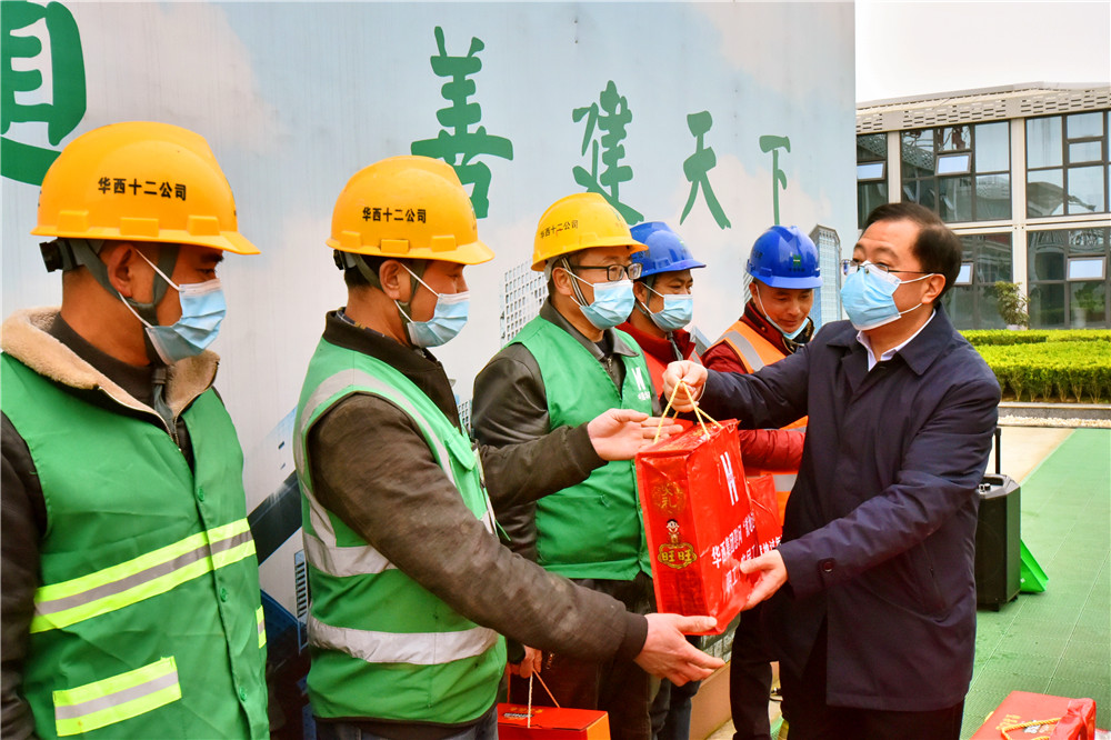 春節(jié)日益臨近,為響應(yīng)國(guó)家疫情防控工作號(hào)召,鼓勵(lì)引導(dǎo)職工、農(nóng)民工等人員留在就業(yè)地安心過(guò)年,1月29日,集團(tuán)黨委委員、職工董事、工會(huì)主席武勇率隊(duì)前往十二公司叢樹(shù)新型社區(qū)項(xiàng)目看望慰問(wèn)“就地過(guò)年”的一線勞動(dòng)者們。項(xiàng)目部職工、農(nóng)民工代表40余人參加了此次活動(dòng),華西十二公司副總經(jīng)理徐佳能參加慰問(wèn)活動(dòng)。