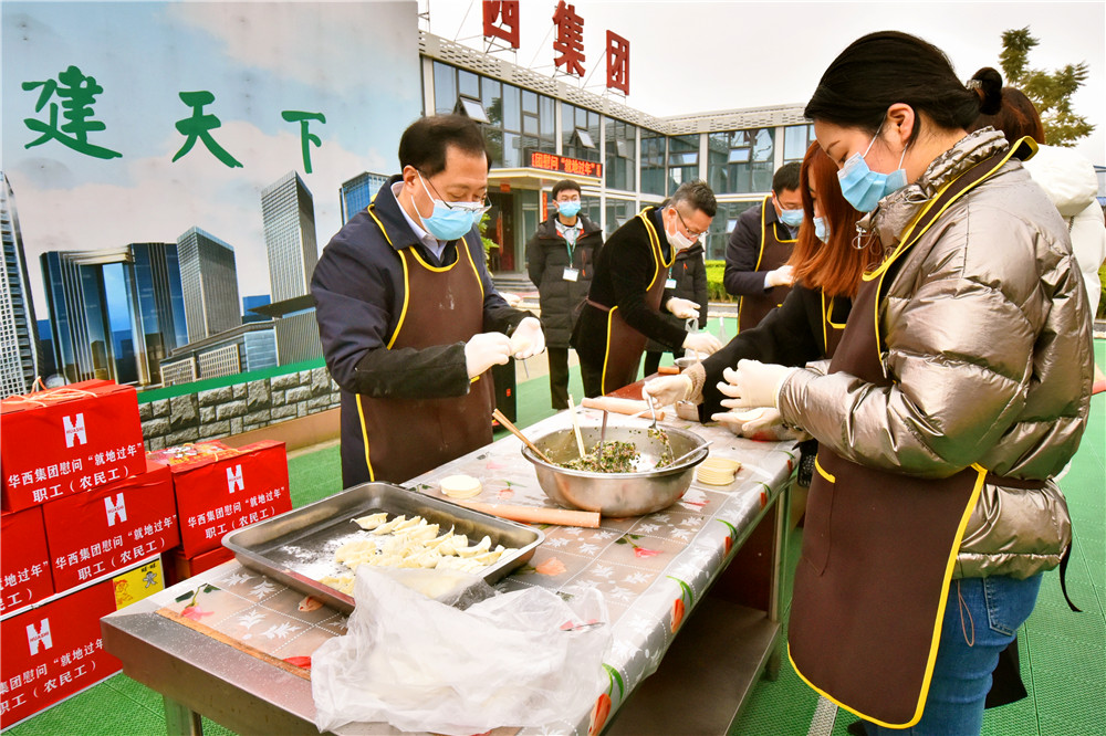 慰問(wèn)過(guò)程中,武勇與項(xiàng)目職工、農(nóng)民工代表親切交流,詳細(xì)詢問(wèn)他們的工作環(huán)境、生活需求等,隨后將新春對(duì)聯(lián)、年貨大禮包等慰問(wèn)品發(fā)放到大家手中,讓他們感受到了集團(tuán)新春的關(guān)懷?;顒?dòng)中,武勇與大家一起寫春聯(lián)、包餃子、送祝福,一個(gè)個(gè)美味的餃子,一條條火紅的春聯(lián)為即將來(lái)臨的新春佳節(jié)增添了溫馨和諧的節(jié)日氛圍。