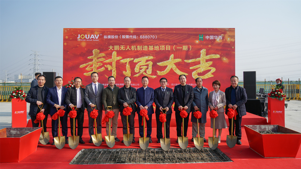 隨后,各方參會(huì)領(lǐng)導(dǎo)手持鐵鏟,共同為頂樓澆筑最后一方混凝土,標(biāo)志著大鵬無(wú)人機(jī)制造基地項(xiàng)目(一期)正式封頂。