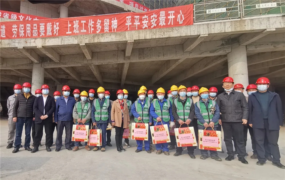 在2021年新春佳節(jié)來臨之際,四川省國資委黨委委員、副主任游代麗一行于2月10日前往華西十二公司承建的天府新區(qū)省級文化中心項目調(diào)研督導(dǎo)及走訪慰問留川管理人員及農(nóng)民工。國資委社會責(zé)任處處長殷波、社會責(zé)任處四級調(diào)研員鐘浩、華西十二公司黨委書記、執(zhí)行董事范曉晉、常務(wù)副總經(jīng)理顧金戈、副總經(jīng)理胡銳、三分公司黨總支書記余列及項目全體管理人員參加慰問。