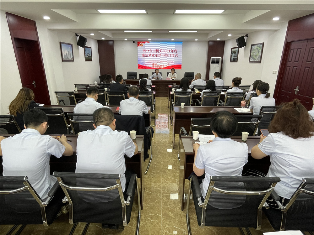 隨后,分公司本部黨支部組織分公司本部全體管理人員開展了《2021年度廉潔從業(yè)承諾書》簽訂儀式。