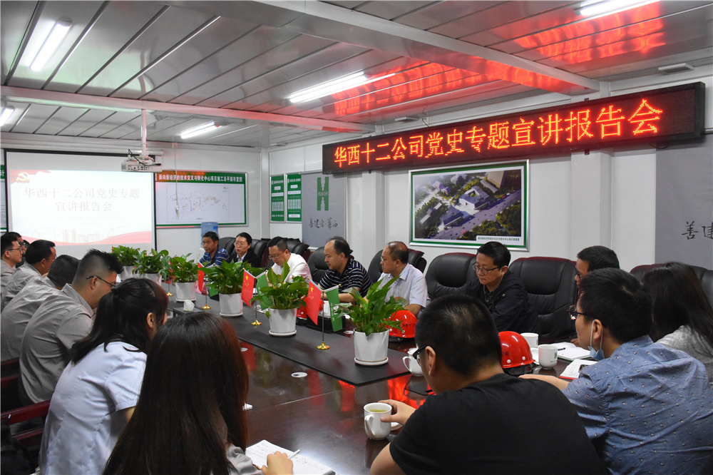 5月26日,公司副總經(jīng)理、總工程師謝勇前往面向新經(jīng)濟的技術(shù)交叉與轉(zhuǎn)化中心項目黨支部開展黨史專題宣講,公司副總工程師周俊、四分公司黨總支書記馬春,副總經(jīng)理、總工程師霍龍飛、綜合辦及項目部全體黨員職工參加學(xué)習(xí)。