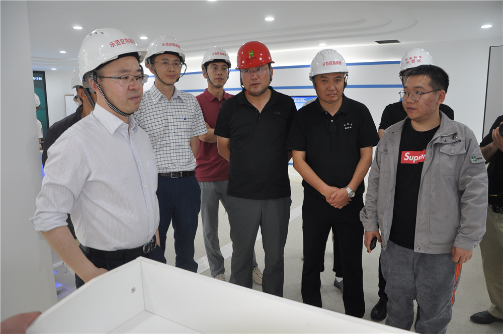 隨后,吳宏剛一行來(lái)到了施工現(xiàn)場(chǎng),詳細(xì)了解了民航科技創(chuàng)新示范區(qū)施工情況,鄒明君就項(xiàng)目工程進(jìn)展、質(zhì)量安全、成本控制、安全文明施工及面臨困難等方面進(jìn)行了匯報(bào)。吳宏剛對(duì)華西項(xiàng)目部所做的各項(xiàng)工作給予了充分肯定和高度評(píng)價(jià),針對(duì)后續(xù)的工作,吳宏剛希望項(xiàng)目部全體人員能夠再接再厲,全力以赴,克服困難,進(jìn)一步提升安全管理水平,嚴(yán)把質(zhì)量關(guān)口,突破技術(shù)創(chuàng)新,爭(zhēng)取年底完成A-02地塊主體結(jié)構(gòu)封頂。最后,吳宏剛一行來(lái)到了項(xiàng)目部智慧工地,認(rèn)真聽(tīng)取了BIM技術(shù)員對(duì)建筑工地的遠(yuǎn)程監(jiān)督、現(xiàn)場(chǎng)監(jiān)管具體情況介紹,詳細(xì)了解了監(jiān)控設(shè)備、監(jiān)控平臺(tái)運(yùn)行狀況,并現(xiàn)場(chǎng)觀看了視頻監(jiān)控、實(shí)時(shí)動(dòng)態(tài)畫(huà)面信息,親自體驗(yàn)了VR模擬事故現(xiàn)場(chǎng),對(duì)項(xiàng)目部“智慧工地”監(jiān)管平臺(tái)建設(shè)運(yùn)行給予了高度評(píng)價(jià)。