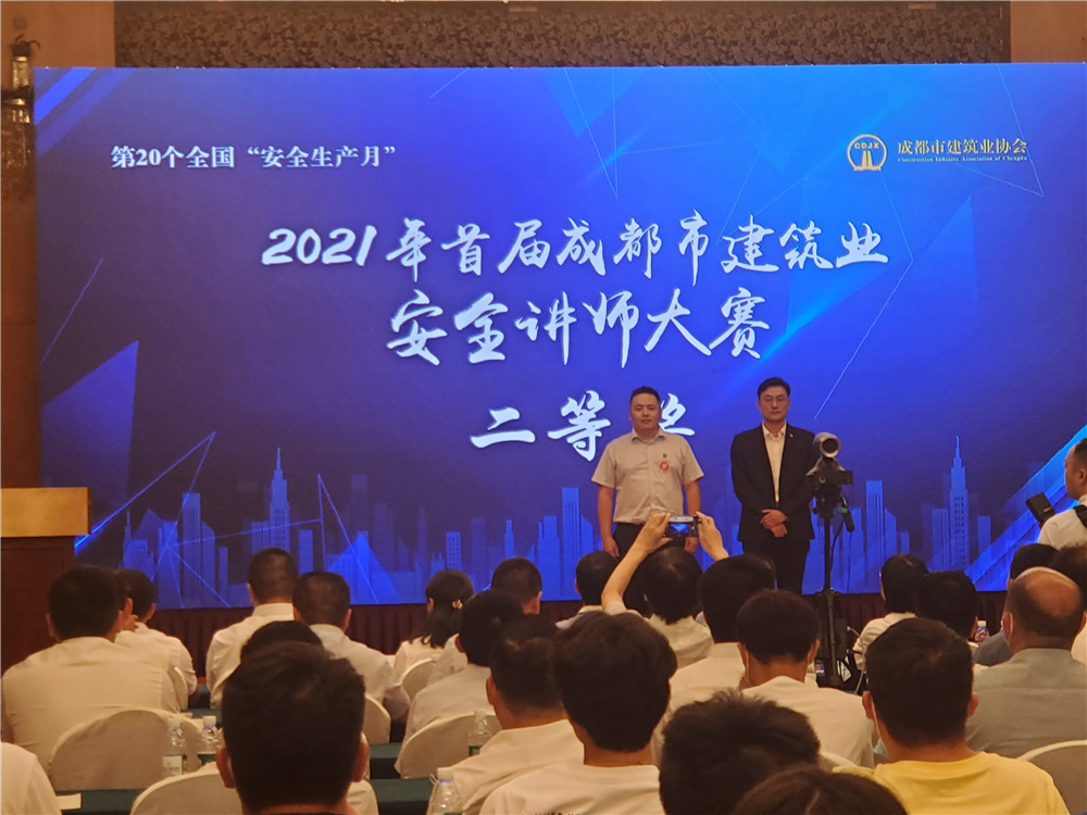 為積極落實安全責任,推動安全發(fā)展,引導成都市建筑業(yè)從業(yè)人員在安全生產(chǎn)中積極作為、勇于擔當,切實保障群眾生命財產(chǎn)安全,6月17日下午,由成都市建筑業(yè)協(xié)會主辦的2021年首屆成都市建筑業(yè)安全講師大賽來到了激動人心的決賽時刻,共有12名晉級的安全講師在此云集,他們同臺角逐,一個個生動的安全生產(chǎn)故事,充滿了正能量,弘揚了新理念,精彩的演講贏得了評委和現(xiàn)場觀眾的一致好評。經(jīng)過決賽緊張激烈的角逐,來自公司天府新區(qū)省級文化中心項目部安全員韋嘯一路過關斬將,最終獲得二等獎的殊榮!
