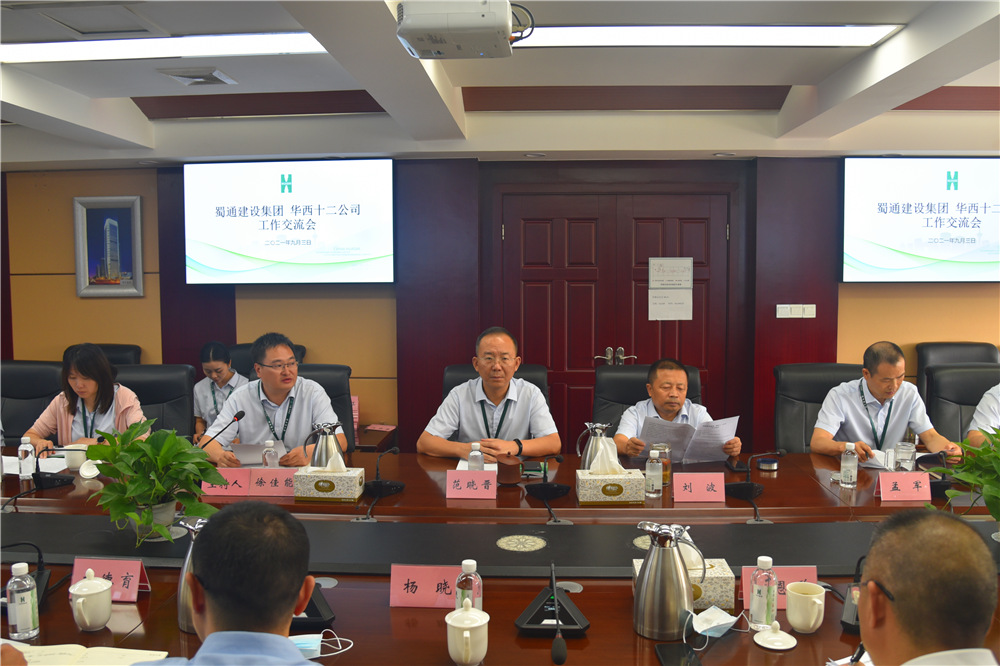 9月3日下午,四川省蜀通建設集團有限責任公司黨委書記、董事長龍恩弟一行到訪華西十二公司開展座談交流。華西十二公司黨委書記、執(zhí)行董事范曉晉、總經(jīng)濟師劉波、副總經(jīng)理徐佳能、財務總監(jiān)孟軍參加會議。會議由徐佳能主持。