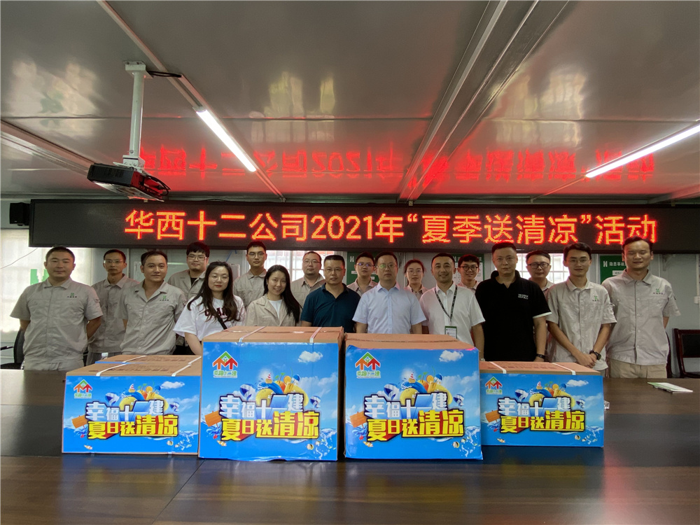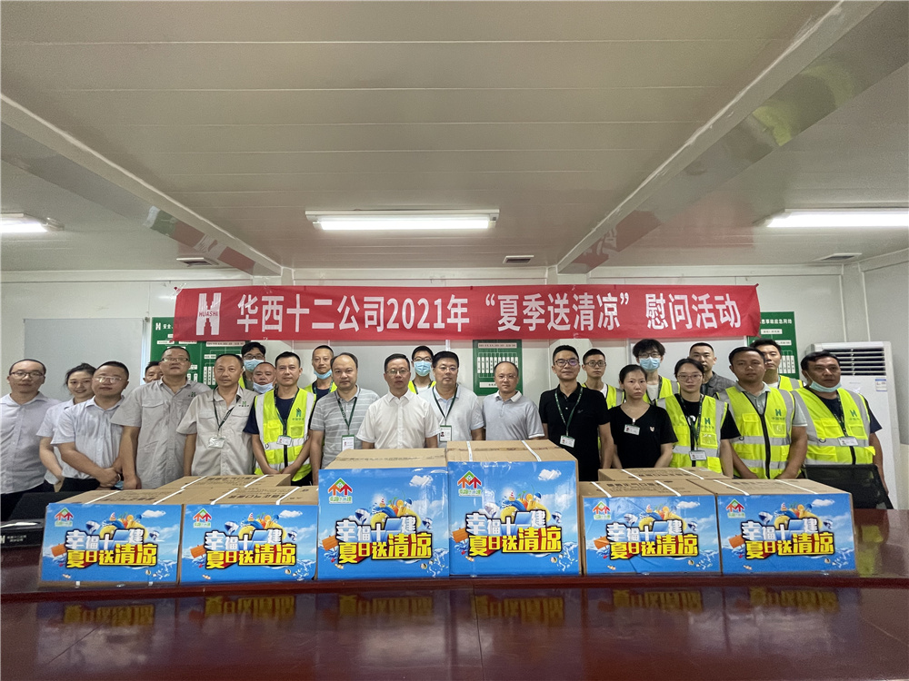 為積極保障施工一線職工身心健康,持續(xù)做好夏季防暑降溫工作,華西十二公司副總經(jīng)理、總工程師謝勇分別前往金牛賓館改擴建二期項目及北城時代(二期)C地塊項目開展2021年“夏季送清涼”慰問活動。公司副總工程師周俊、工會副主席王捷宇、四分公司、一分公司、裝飾公司主要領(lǐng)導(dǎo)及公司工會、科信部相關(guān)負(fù)責(zé)人員參加活動。