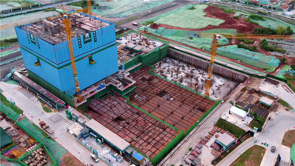 兩個項目自成立以來,創(chuàng)優(yōu)目標(biāo)明確,著力打造“綠色建造工程”,在科技創(chuàng)新方面應(yīng)用《建筑業(yè)10項新技術(shù)》中,在施工過程中采用大體積混凝土施工及溫控技術(shù),智能采集監(jiān)測數(shù)據(jù),運用承插型盤扣式支撐架,BIM 模型在各個專業(yè)模型及管線綜合布置方面的應(yīng)用。此外,以“智能監(jiān)控附著式提升架”、“混凝土成型質(zhì)量和防滲漏技術(shù)”、“基于云-邊-端協(xié)同的施工現(xiàn)場綜合能源運行優(yōu)化技術(shù)”、“綠色施工智慧管理系統(tǒng)”成功打造施工特色和亮點。在施工過程中管理人員沖鋒在前,常駐現(xiàn)場,及時同業(yè)主及相關(guān)單位交流溝通,認真負責(zé)解決各種施工現(xiàn)場問題,以高度的責(zé)任心和專業(yè)的服務(wù)全力保障項目建設(shè)工作順利推進。