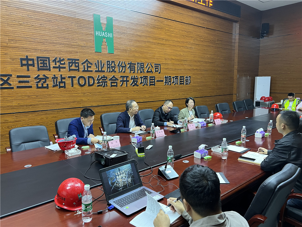 在三岔湖TOD項目,范曉晉一行首先了解了施工現(xiàn)場建設(shè)情況,聽取了項目負(fù)責(zé)人關(guān)于項目建設(shè)情況的匯報。相關(guān)人員對項目進展、安全質(zhì)量管理、標(biāo)準(zhǔn)化管理、疫情防控管理及下一步工作安排進行了詳細介紹。胡銳、公司相關(guān)部門工作人員分別對項目現(xiàn)場的安全和質(zhì)量進行了檢查,檢查過程中對項目安全及質(zhì)量管理上存在的問題提出了相應(yīng)的整改意見和工作要求。