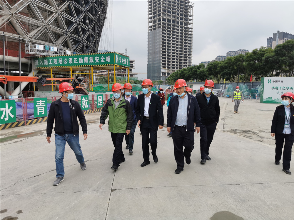 10月27日,深圳市寶安區(qū)委常委、副區(qū)長蔡凡,深圳市寶安區(qū)住房和建設(shè)局副局長廖遠(yuǎn)濱一行到華西十二公司承建的天府新區(qū)省級文化中心項目調(diào)研,股份公司工程管理中心副總監(jiān)樊釗甫、中國華西企業(yè)有限公司黨委書記、董事長史立賓,董事、財務(wù)總監(jiān)張粒粒,華西十二公司副總經(jīng)理胡銳參加調(diào)研。