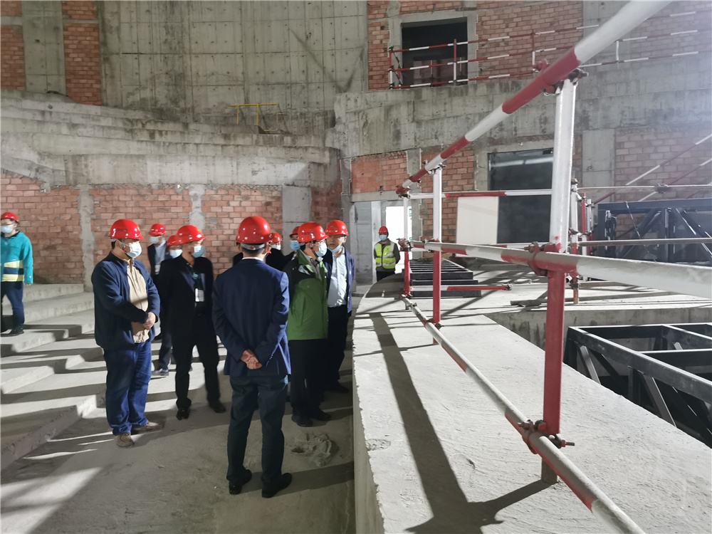 蔡凡一行首先來到現(xiàn)場實地察看了項目建設(shè)情況。在項目負(fù)責(zé)人的引導(dǎo)下,分別參觀了一號樓音樂廳、歌劇廳和戲曲廳,詳細(xì)了解各個區(qū)域的使用功能、施工工藝和施工進(jìn)度,認(rèn)真聽取了項目負(fù)責(zé)人對整體項目的工程概況、設(shè)計理念、技術(shù)創(chuàng)新和項目團隊建設(shè)的講解。