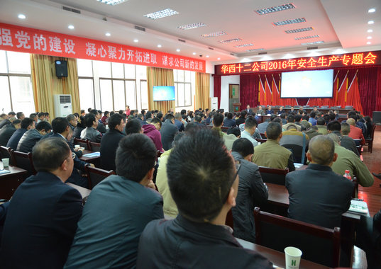 近日,華西十二公司召開(kāi)2016年安全生產(chǎn)專(zhuān)題會(huì)議,公司領(lǐng)導(dǎo)、三副總師、部門(mén)負(fù)責(zé)人、項(xiàng)目經(jīng)理、項(xiàng)目書(shū)記、項(xiàng)目安全生產(chǎn)管理員等共200名員工參加會(huì)議。