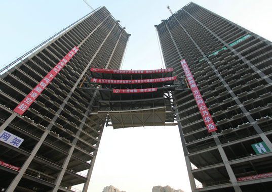 本次提升對(duì)接的鋼結(jié)構(gòu)連廊橫跨于環(huán)球金融中心南北兩座塔樓之間,連廊跨度最短的35米,最長(zhǎng)的78米,重達(dá)1200多噸,整體提升高度為206米。在此高度提升如此重量的龐然大物,其工程難度堪稱(chēng)成都之最,其提升高度和重量均為整個(gè)西部之最!這也標(biāo)志著華西在西部建筑史上再次書(shū)寫(xiě)歷史,再次記下了濃墨重彩的一筆!